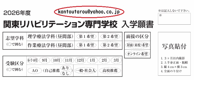 注2:入学願書の上部に確実に連絡がつけられるメールアドレスを記入